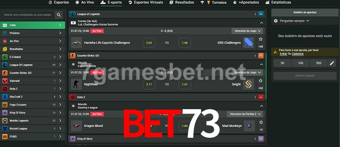 A aposta bet73 oferece aos jogadores a experiência mais conveniente de apostas em eSports!